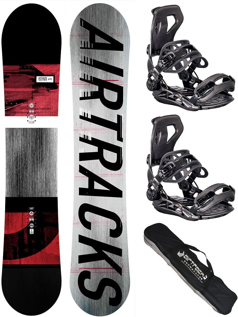 Airtracks Herren Snowboard Set - Waves Camber Snowboard Extra Wide - Snowboardbindung Star oder Master Fastec - Snowboard Bag 155 159 161 165 171 cm